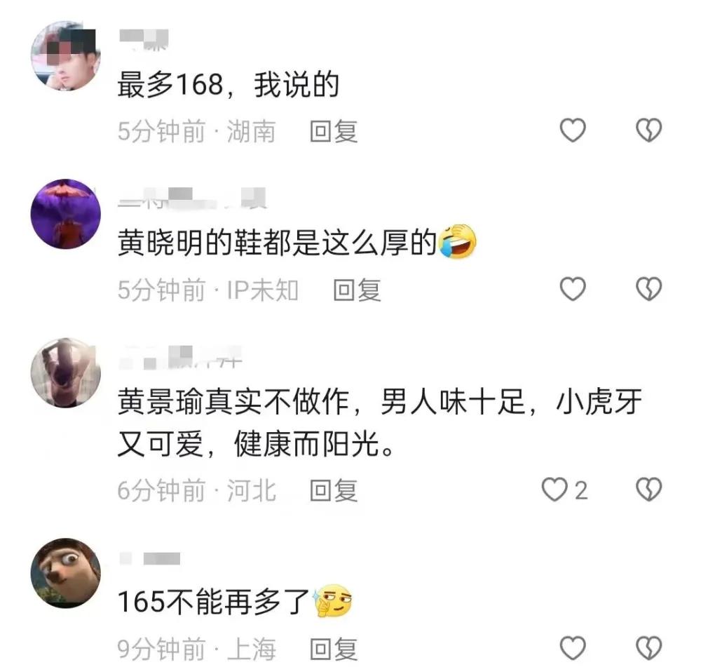 还有来自路人的质疑,在《中餐厅 6》的一期节目中,一个大叔说," 黄晓明应该不超过 1 米 7,我刚刚上去和他比了下,看起来差不多。"