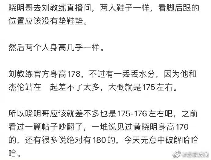 眼尖的网友趁着晓明哥在刘畊宏直播间跳操的时候,揭晓了他的身高。