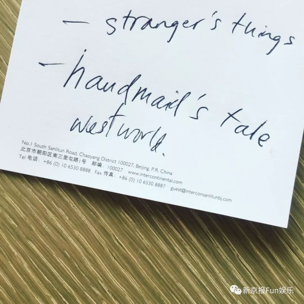 陈慧琳亲手写下最近看的剧新京报:有新的演唱会的计划吗?陈慧琳:有,赶紧出一些新歌就有演唱会了。 福利:陈慧琳签名照 3张 参与方式: 在这条推送下面留言,写下你想对她说的话~我们会选择优秀的留言上精选,截止到7月31日12点,留言点赞前3的亲将会分别获得签名一份。 ps:7月31日推送中公布中奖名单,福利不包邮