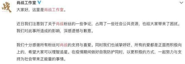 事件发生的起初,很多人认为肖战应该第一时间站出来阻止这场网络战斗,但直到事情失控,肖战工作室才发文道歉。