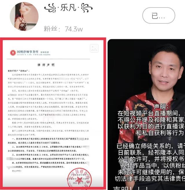 2月18日,自拉黑事件之后一直保持沉默的乐凡终于有了回应。她公开发布了一道律师函,以此来公布她和祁隆离婚的真正原因。