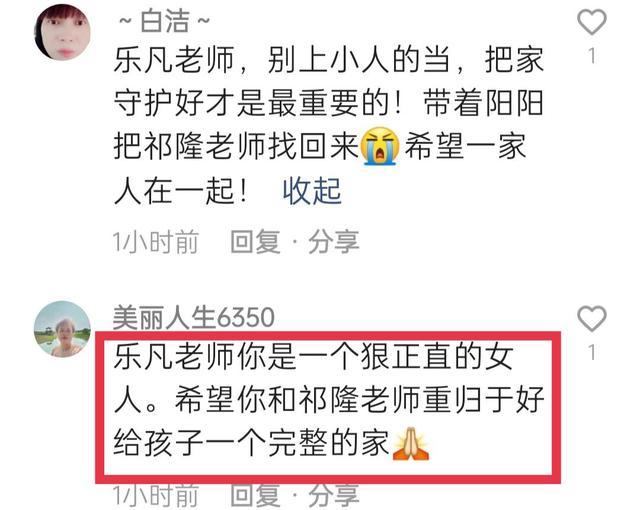 于是纷纷跑到乐凡的直播账号上给乐凡留言,希望她能告知离婚的原因并且看在孩子的份上能够与祁隆破镜重圆。