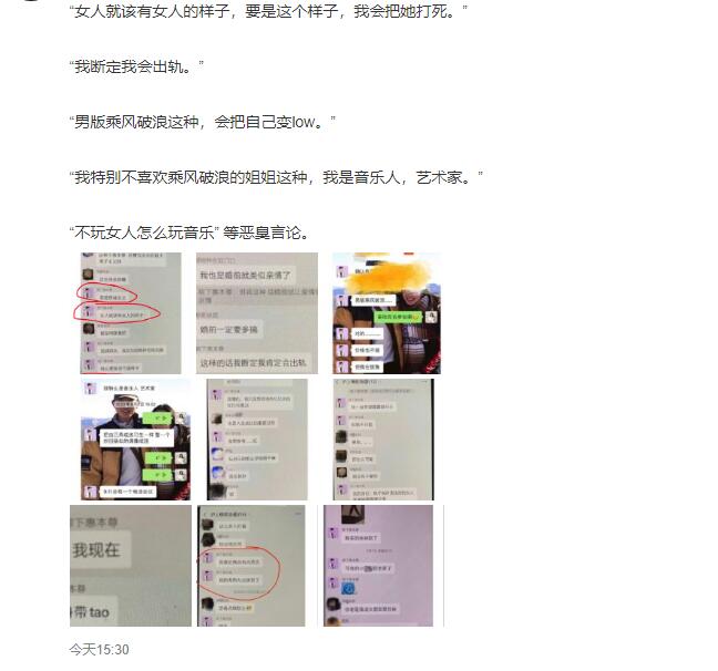 图中霍尊说自己是极端主义,“女人就该有女人的样子,要是这个X样子,我会把她打死”,“我一直希望露露提分手,但她不可能,我对露露没有过热恋的”,他自曝与乐手一夜情,称呼女性“小XX精”,“难怪我我总是身子虚”,还有许多露骨内容。霍尊还称特别不喜欢《浪姐》这种节目,自己是音乐人、艺术家,参加节目会把自己弄low,“整一个炒回锅似的偶像成团。”