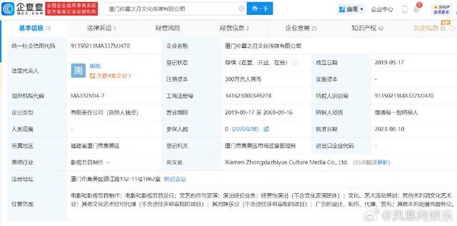 新浪娱乐讯 近日,肖伟、王力威(肖战经纪人)退出厦门仲夏之月文化传媒有限公司股东行列,退出前两人分别持股 20% 与 50%。股东变更后,方持慧成该公司唯一股东,最终受益股份从 "30%" 上升到 "100%"。据悉,该公司成立于 2019 年 9 月,注册资本 300 万元,经营范围包含电影和影视节目制作、文艺创作与表演、演出经纪业务等。此外,该公司已申请注册数十个 " 肖战 " 相关商标,并于 2022 年 3 月,将 26 枚 " 战 XZ · STUDIO" 转让给北京竹报文化传媒有限公司。