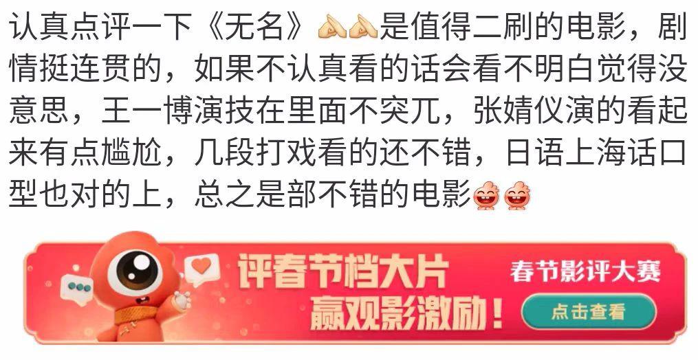 《无名》上映前,能否收获大众审美的话题上了热搜↓