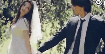 她穿着白婚纱,穿着白球鞋,嫁给那个长身玉立的美男子。