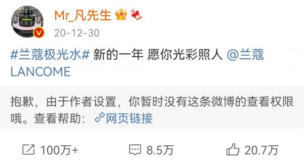 18日下午,科颜氏、良品铺子、韩束在内的多个品牌已经隐藏了官宣吴亦凡代言的推广微博。作为与吴亦凡合作多年的高端美妆品牌,兰蔻也暂时关闭了部分相关贴文,但LouisVuitton、宝格丽等奢侈品牌仍保持正常。