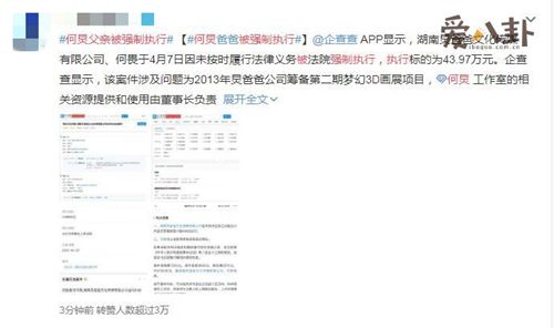 那么何炅爸爸何畏为什么会被法院强制执行呢?这事情得从何炅父亲2013年筹备的项目第二期梦幻3D画展说起,何炅工作室的相关资源和使用由他父亲负责的,但因项目启动资金没有,贺振湘就给何炅父亲账户垫付了40万元。然而,在项目结束之后,贺振湘要求何炅父亲返还他垫付的资金,但何炅父亲拒绝了,最后便打起了官司,现如今8年了。