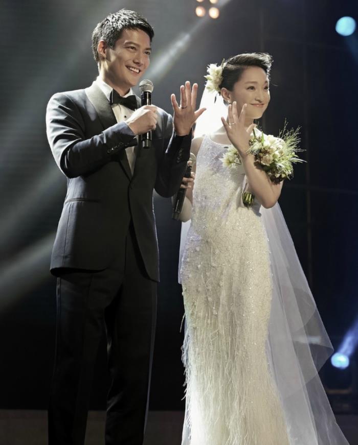 两个月后的活动里,她又穿着婚纱拉着未婚夫的手上台,直接宣布婚讯——这两板斧,真的很牛逼。