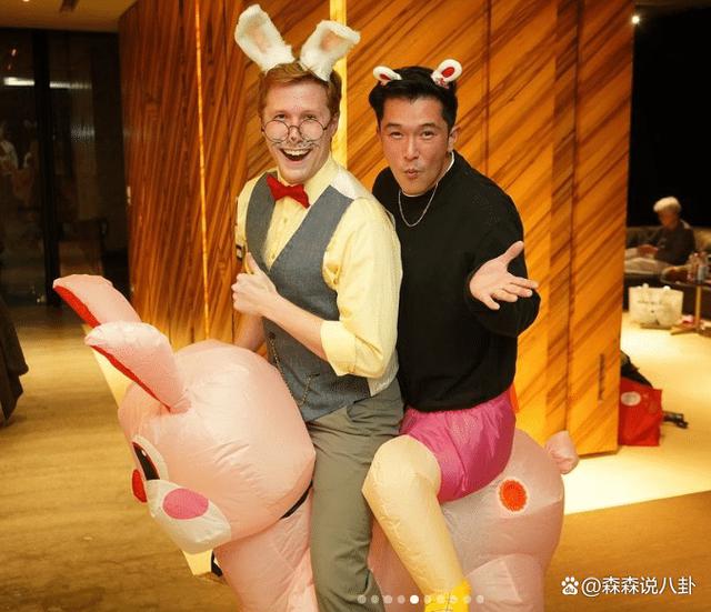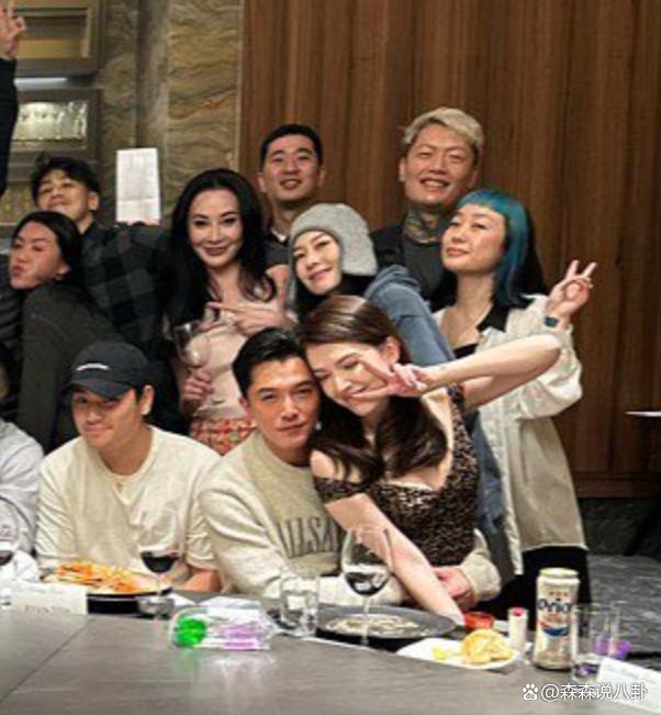 友人公开的合照中,邱泽坐在前排,搂着妻子出镜,他的脸蛋微微发红,应该是喝了点酒才完全放开,许玮甯坐在邱泽身上比 V,十分恩爱。