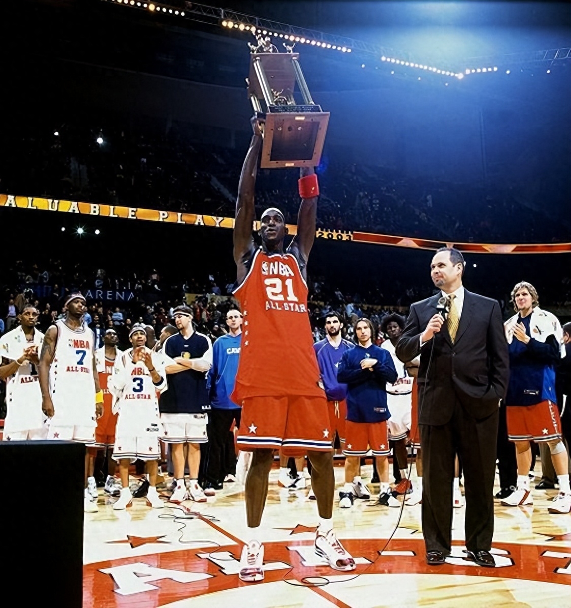 作为NBA历史上最出色的大前锋之一,加内特在这份榜单上也不意外。在2002-03赛季的全明星赛上,加内特全场24投17中得到37分9篮板3助攻,同时还送出5抢断1盖帽的数据,从抢断数据上来看,可以想象当时的全明星还是有防守的,而如今的全明星赛更趋于表演,前三节基本上不防守,只会在第四节象征性地防守一下。