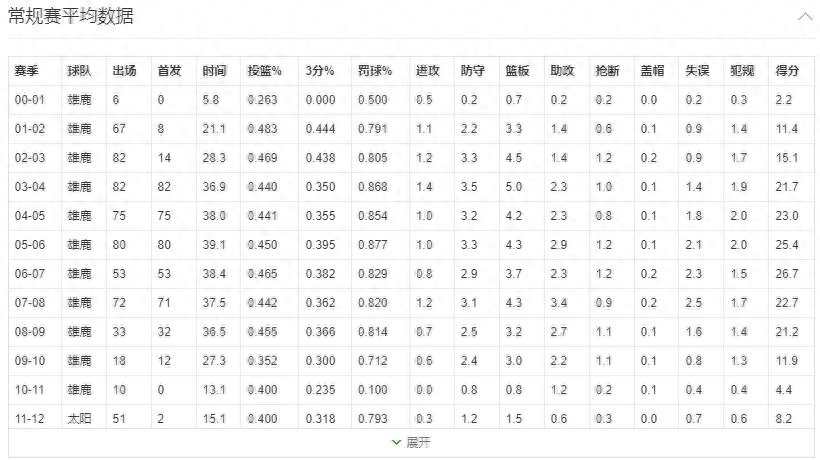 里德常规赛各个赛季场均数据一览