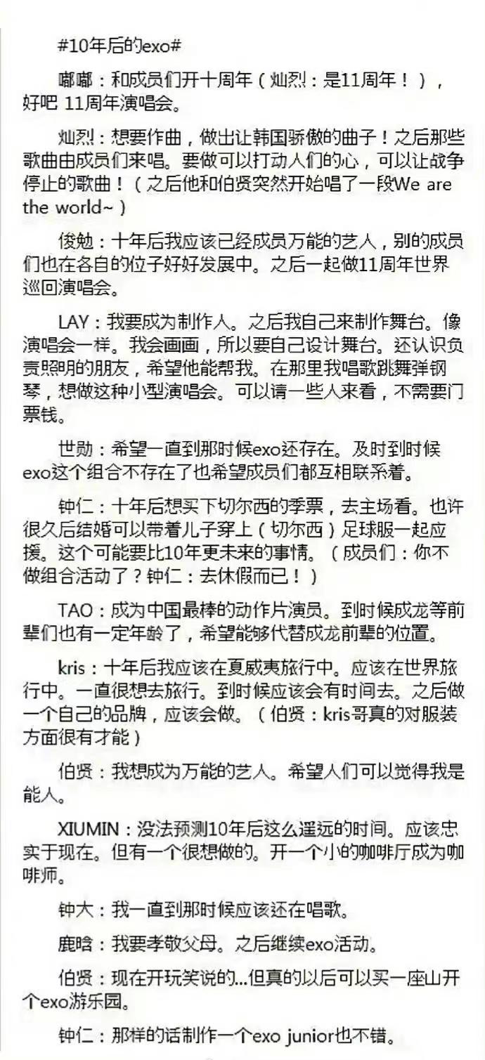 exo成员资料简介12人(EXO成员10年前的愿望曝光:吴某凡很讽刺,黄子韬想接班