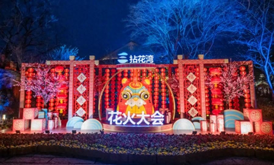 拈花湾新年活动精彩纷呈,民俗演艺荟萃,锣鼓声中闹新年,双人演绎的高难度大环舞、趣味非凡的舞狮、川剧经典变脸等,从白天到夜晚,各类特色演出不停歇;爆糙米、糖人糖画、投壶等新民俗亮相花火大会,满是浓浓的人间烟火气,仿佛回到了小时候的过年。
