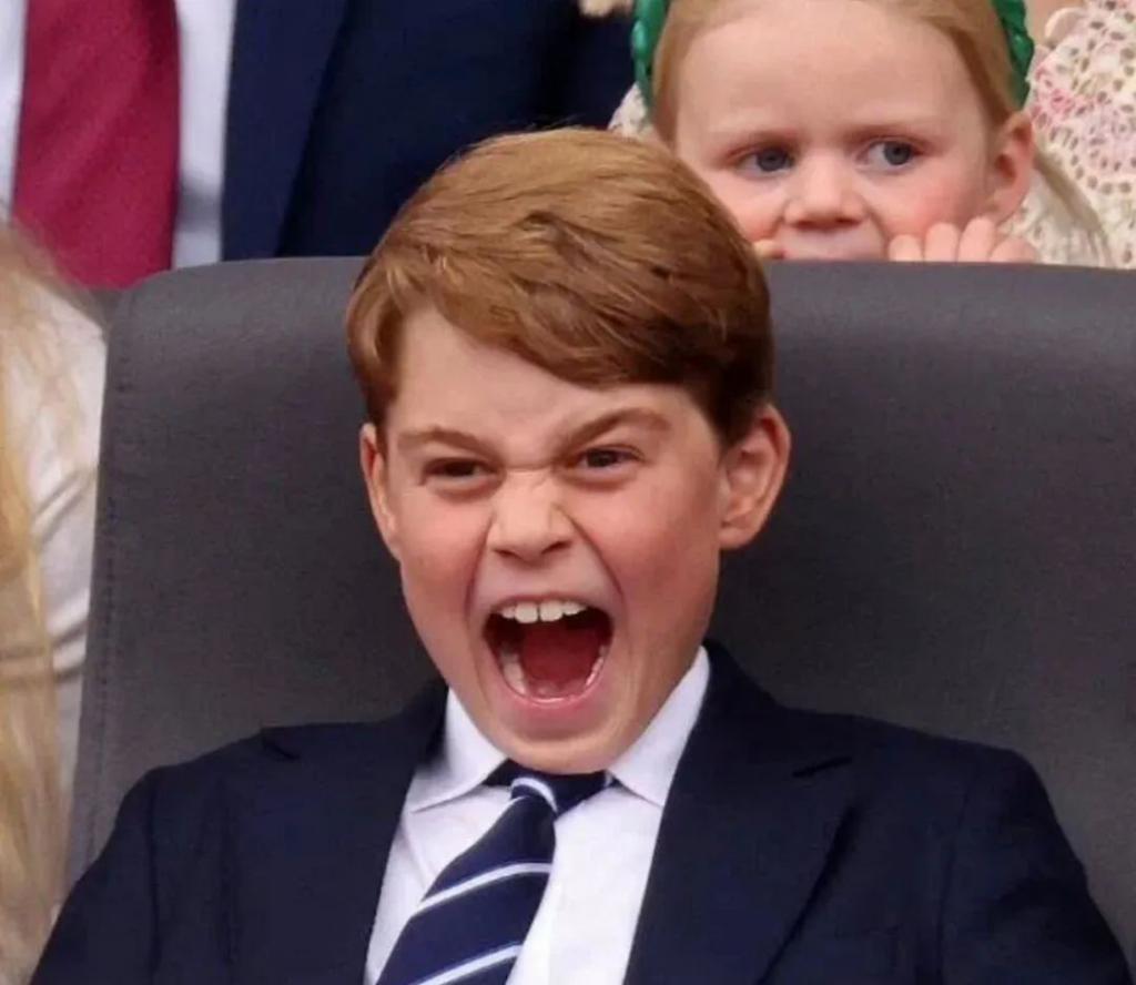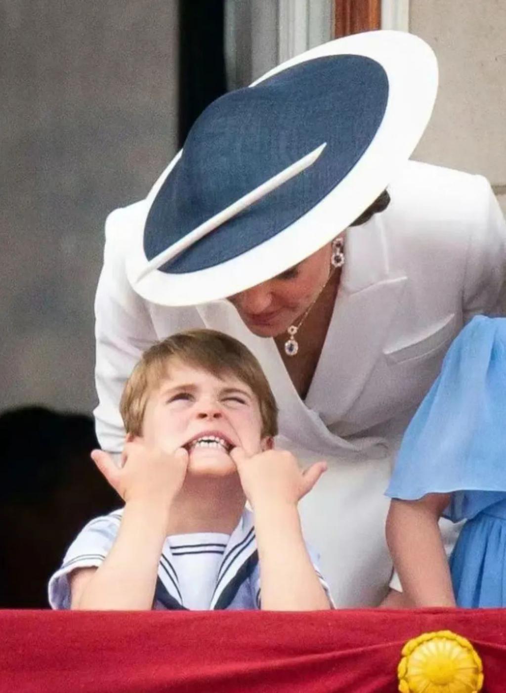 之后在这一年英国的阅兵仪式上,乔治狠狠抢镜,被英媒拍到了吐舌头笑
