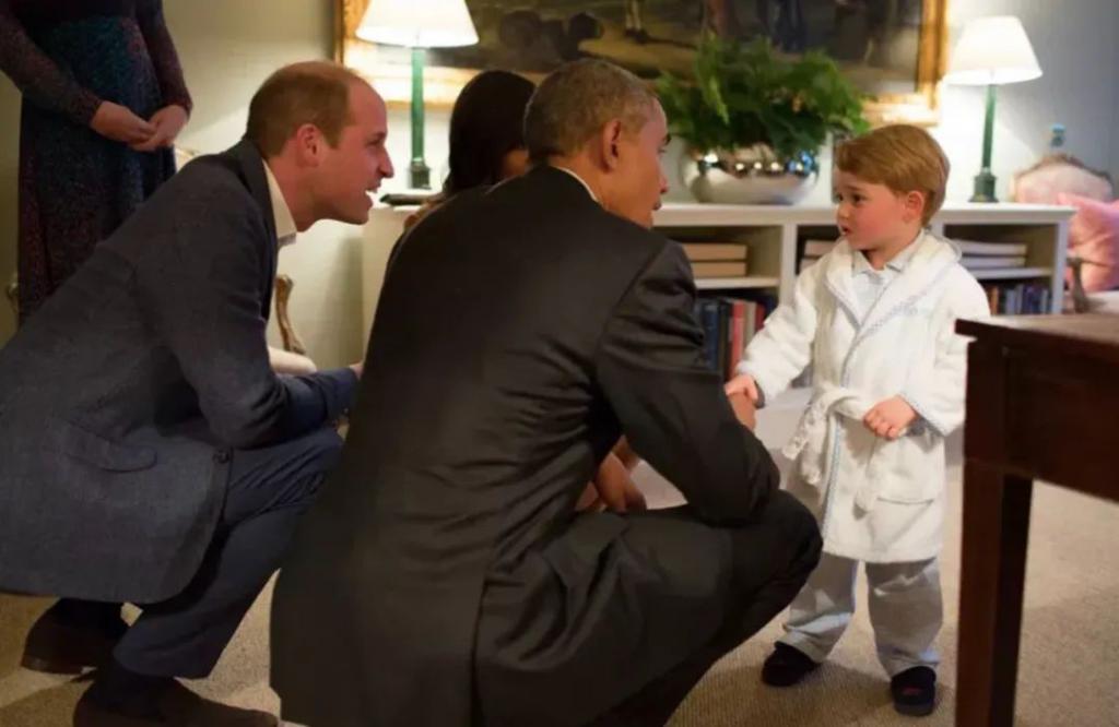 度假归来后不久,这一年还不到三岁的乔治,就穿着睡衣见了时任美国总统奥巴马。