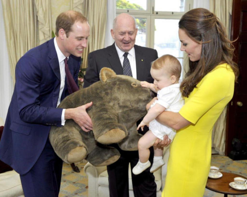 2014 年 4 月,被母亲抱着的乔治获得了由时任澳大利亚总督(彼得 · 科斯格罗夫)赠送的毛绒玩具