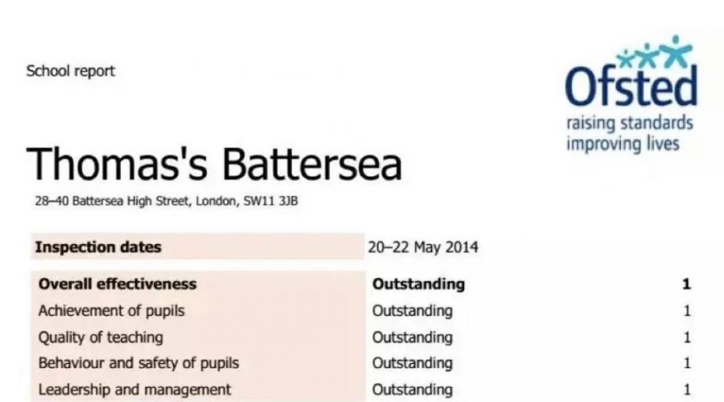 托马斯巴特西小学的评价是 Outstanding(最高等级)。
