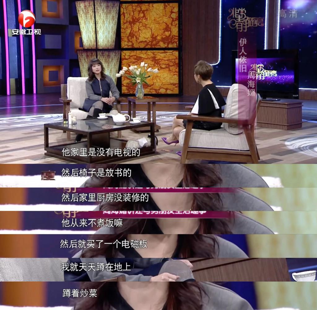 这个男友也是周海媚近些年最常提及的,她常常讲述自己和男友的生活琐事,比如第一次见他就有触电的感觉,一见钟情;第一次去他家,发现连电视都没有,她只好买个电磁炉蹲在地上炒菜等等。