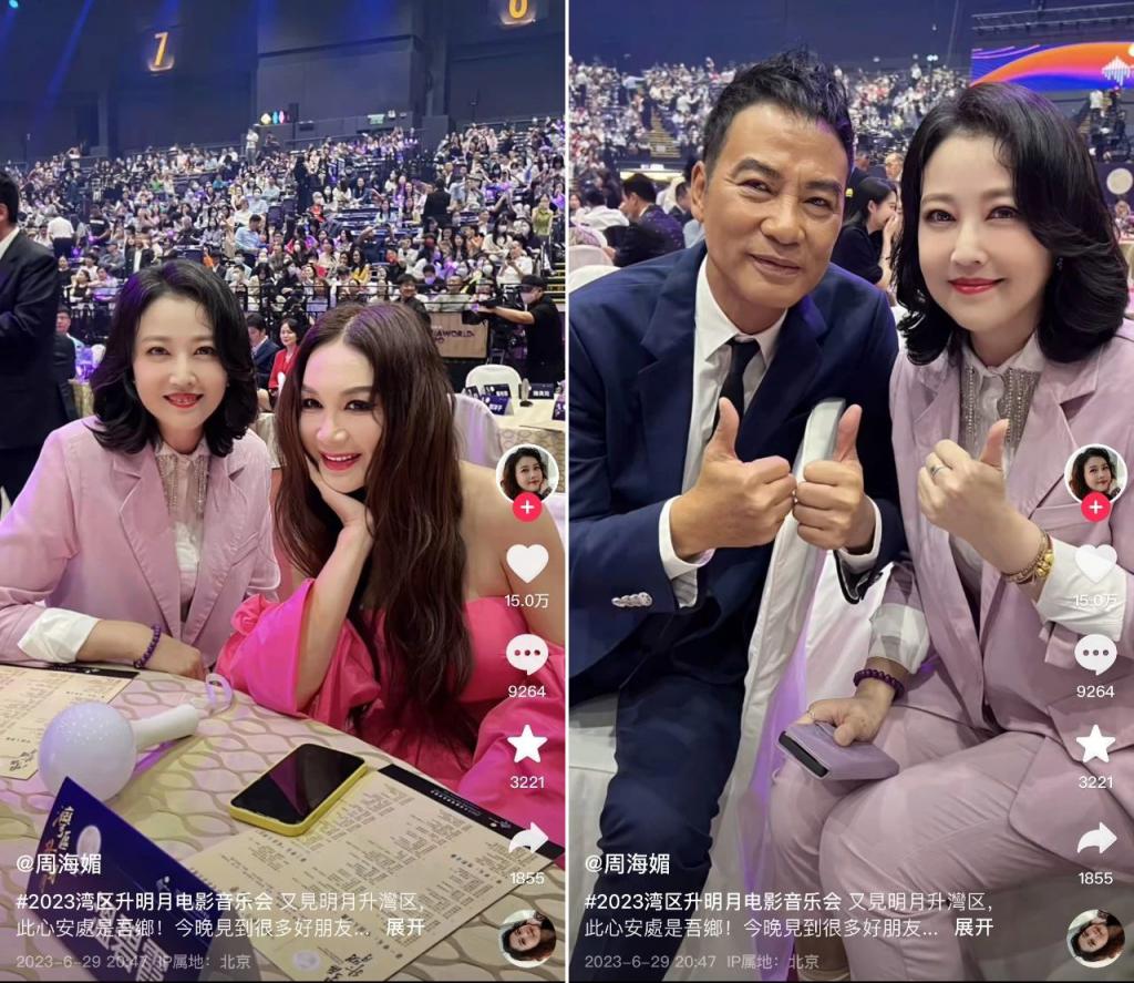 ▲周海媚晒出"湾区升明月"晚会与温碧霞、任达华的合影。