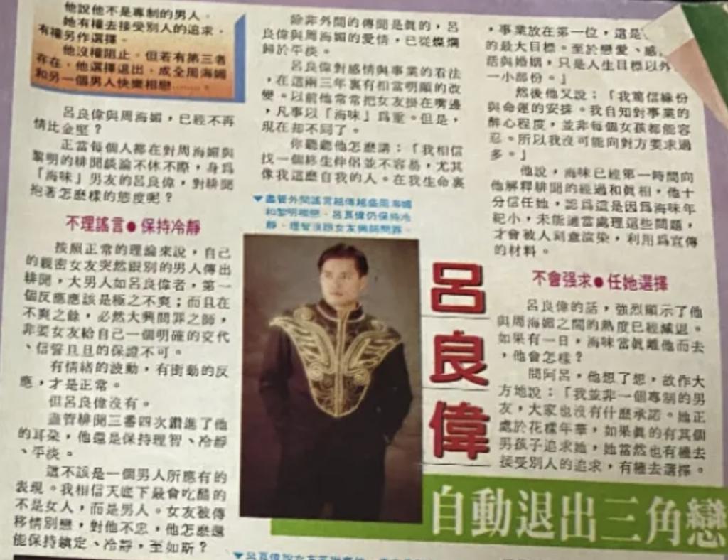 震惊的记者随后去问周海媚的"前夫"吕良伟,吕良伟也间接地承认此事。