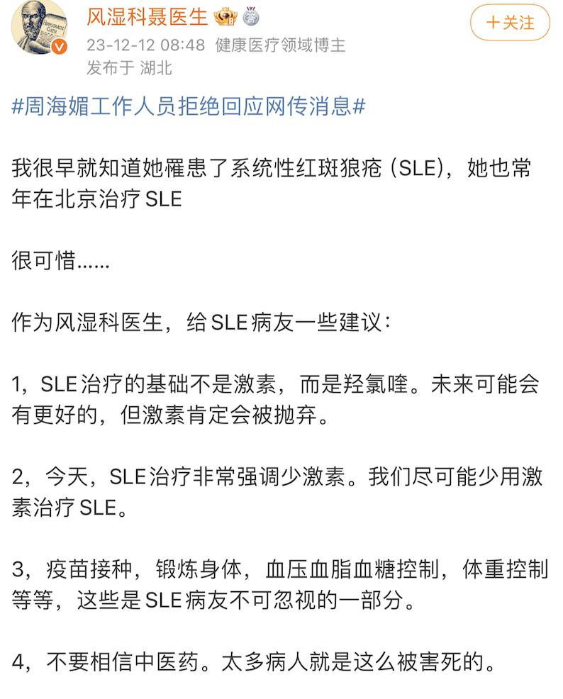 周海媚去世的当下,仍有香港的同行斩钉截铁地说她确实罹患了红斑狼疮;