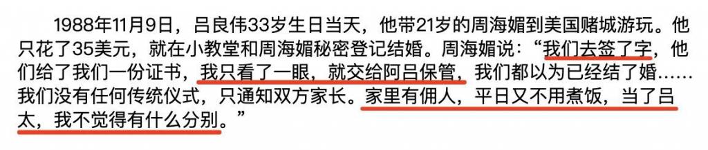 1988年他带周海媚到美国登记结婚,俩人稀里糊涂签名,也没有核实,后来吕良伟要和邝美云结婚时才发现当年的赌城婚约根本不存在。