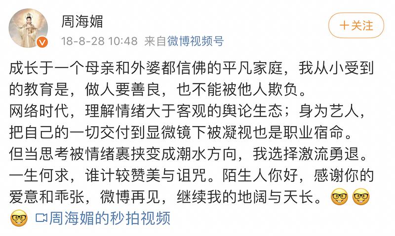 2018年周海媚曾说不堪舆论困扰,离开微博。