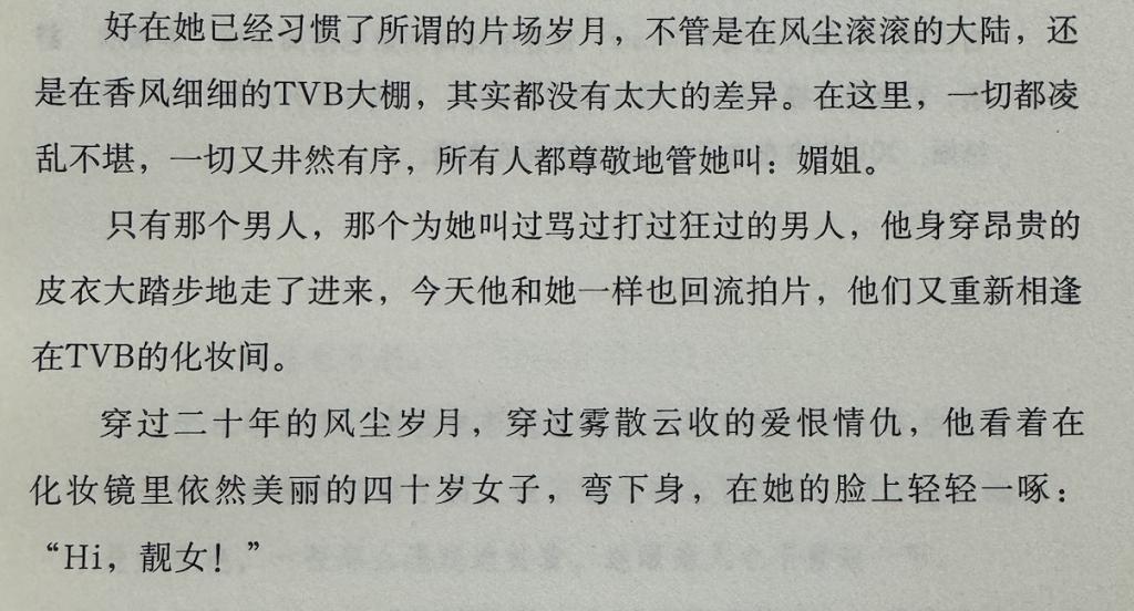 这些年,她从TVB到亚视,传过得红斑狼疮,后来北上内地淘金,在那里,多年前拍下的港剧依然有巨大的影响力,香港明星的招牌依然闪闪发光,每次下到小县城小镇子,人们还是把她围得水泄不通,她是他们心目中永远的大靓女——