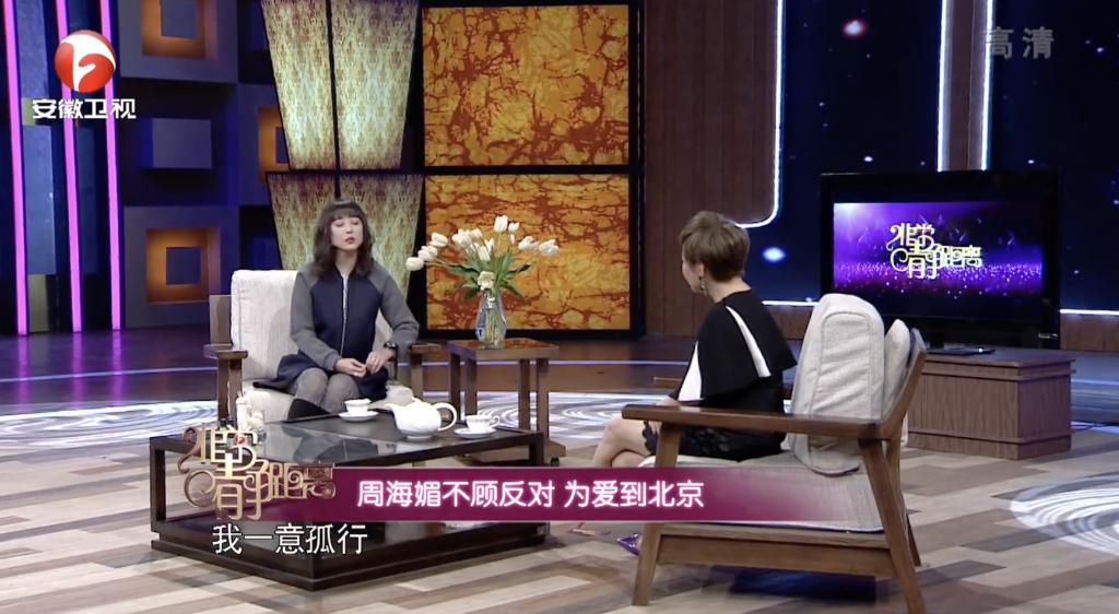 那时周海媚已经决定要移居北京了,为什么会去北京?在许多采访里,周海媚把原因归结为一个浪漫的瞬间,2002年的第一场雪,白色的北京,落雪的城市,令她心向往之;