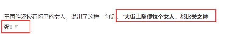 离婚后,王国旌曾公开羞辱关之琳,说出了让她极为难堪的话:“大街上随便拉个女人,都比关之琳强!”