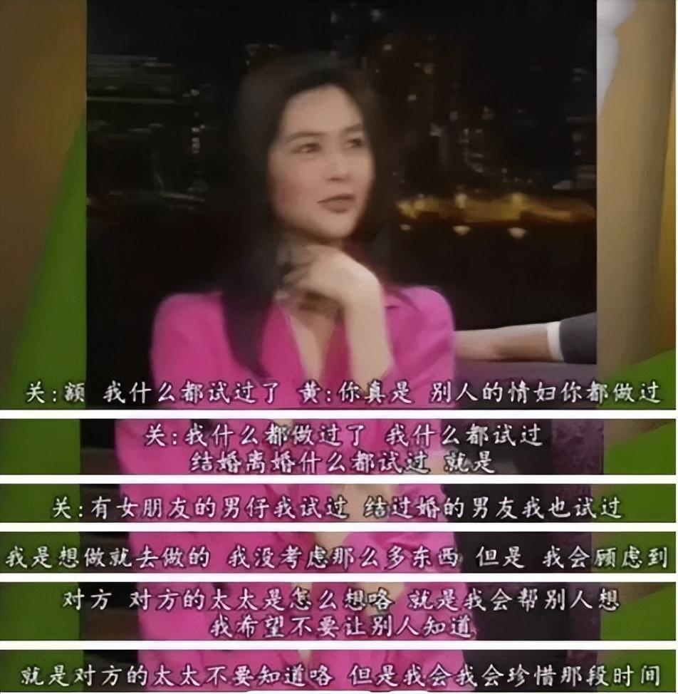 她曾在节目上公开说过:“我什么都做过了,有女朋友的男仔我试过、结过婚的男友我试过。”