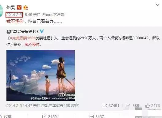 到了2014年,两人的关系似乎开始变化,何老师转发个电影微博,说“我不怪你,你自己看着办”