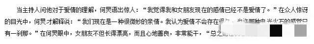 节目中,何老师还对女朋友进行了深情地告白:“她挺漂亮的,特别地善良,很能干。”