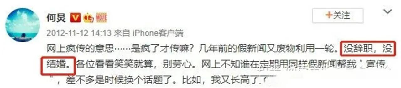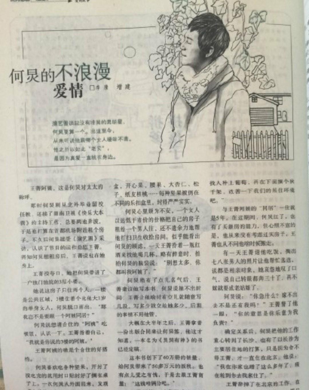 2012年,《意林》杂志上发表了一篇文章,文章的内容很直白,声称何老师早已经结婚了,只是处于隐婚的状态。
