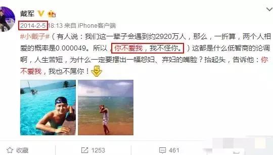 而另一边的戴军,也转发个情侣微博:“你不爱我 我不怪你”。