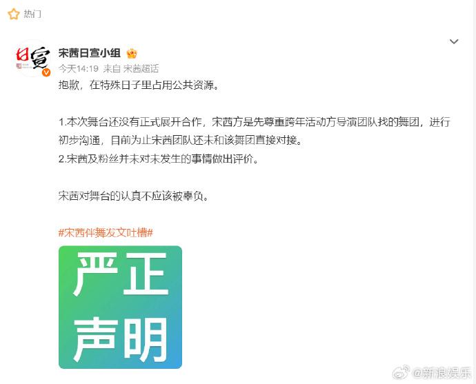 合作舞团发声明向宋茜道歉,前因疑似伴舞发文吐槽宋茜