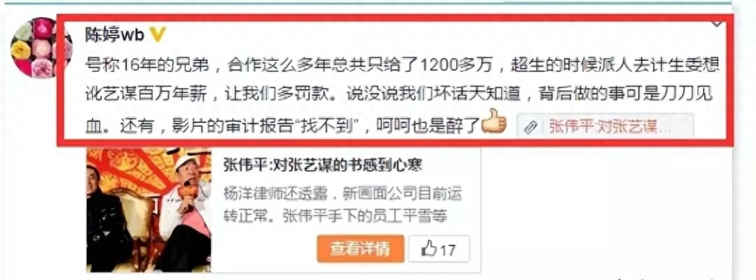 陈婷自从拨云见日后,腰杆子挺直了,自然全心全意站在张艺谋这边,力挺自己丈夫。