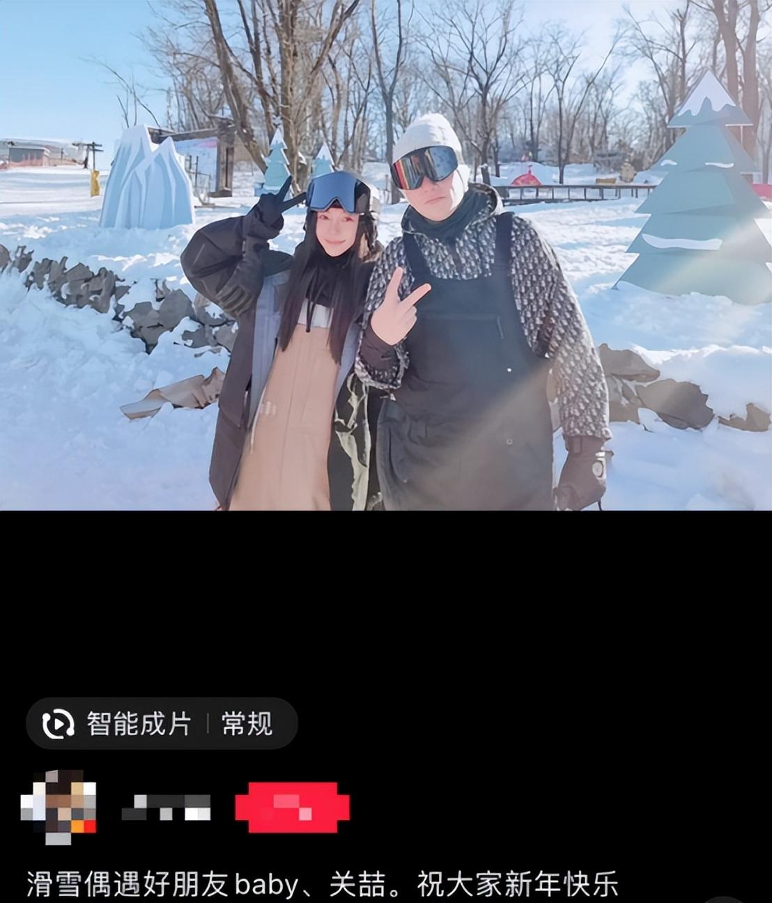 紧接着又有网友分享出了自己在滑雪途中偶遇到了二人的照片,只见照片中的baby露出了全脸,一旁的关喆虽然戴着墨镜,但是魁梧的身材还是能够看出他的一个五官轮廓。面对合影,二人亲切的比耶,看起来关系十分的暧昧,面对这次的爆料也引起了很多网友的关注,对此大家也纷纷在这位网友的视频中评论:“二人怎么会在一起?”,对此这位网友则透露:“好朋友碰到了”。