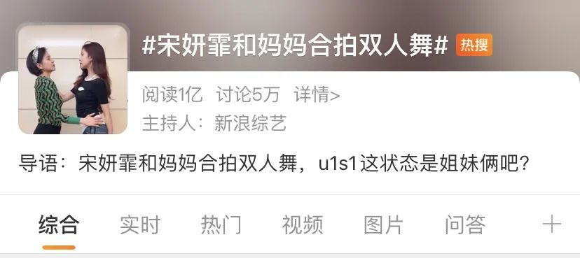 在6月5日的节目中,两人合作表演了一段街舞,简直是嗨翻全场,不仅宋妍霏跳得好,妈妈跳得也很好。