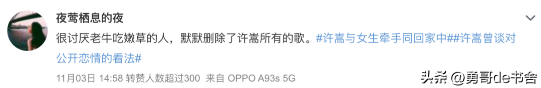 2022年11月2日,许嵩恋情冲上了热搜榜第一。