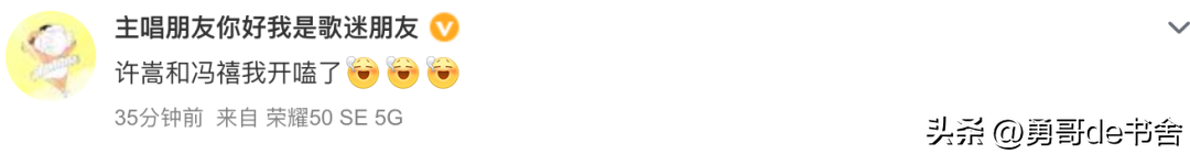 随着时间推移,许嵩、冯禧、恋情、爱情观……各种各样的话题在网上不断发酵。