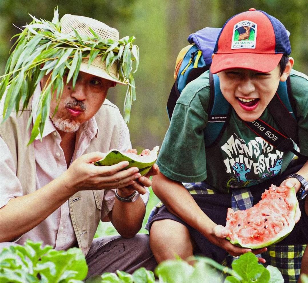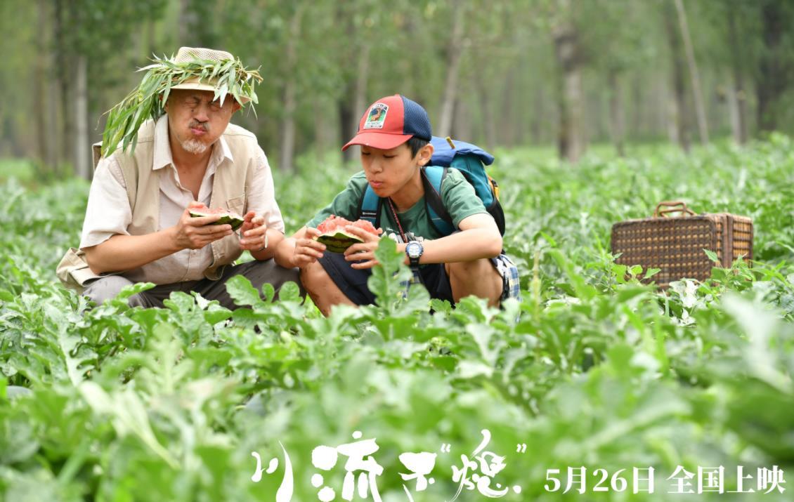 《川流不“熄”》预告片中,张大川和孙子在瓜田里吃瓜的那场戏,应该算是整部电影中杨新鸣的高光时刻。爷孙俩走了一路,饿得不行,遇到了一片瓜田。
