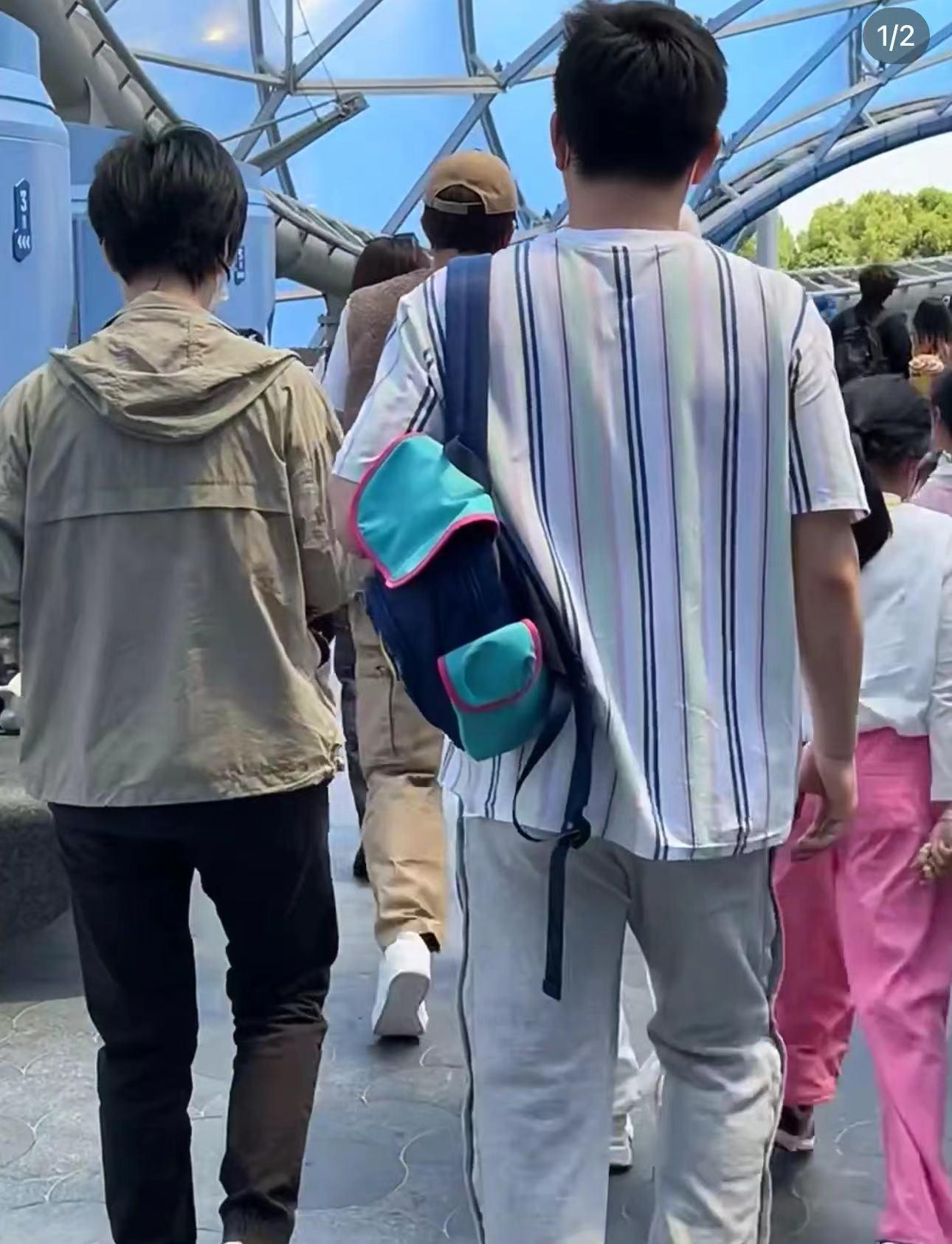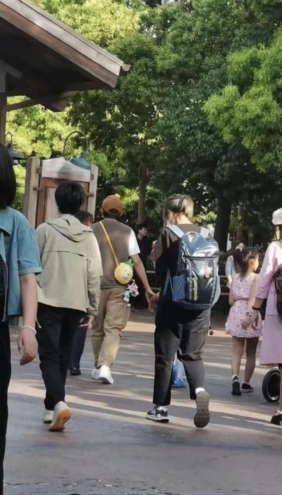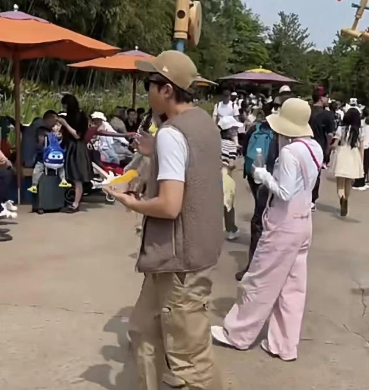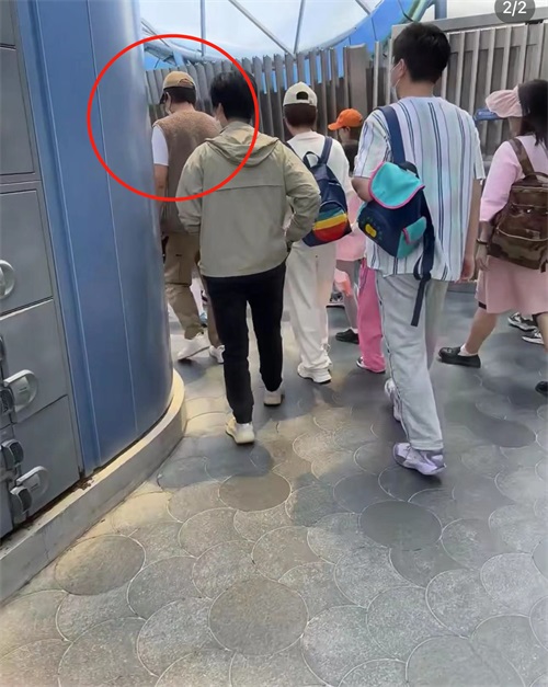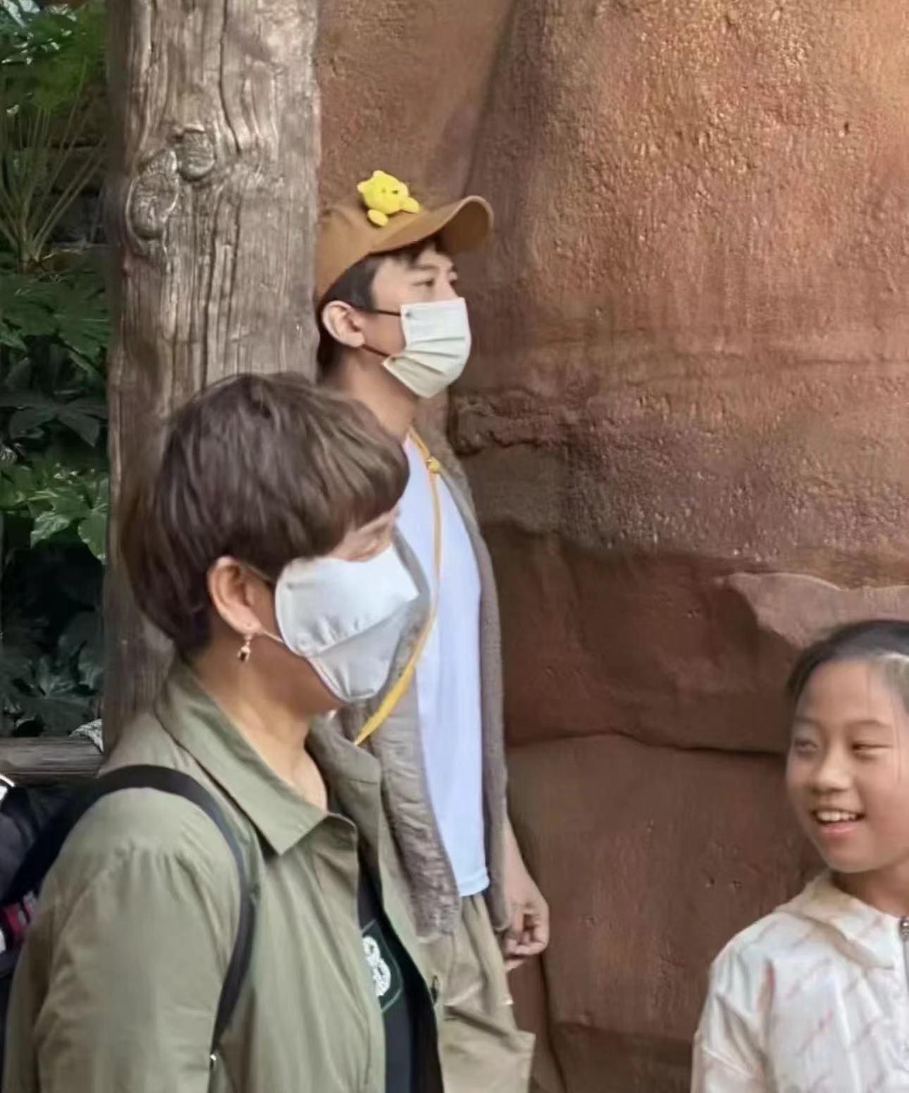 邓超一家现身迪士尼(两夫妻冷都穿两件,其他游客穿短袖)