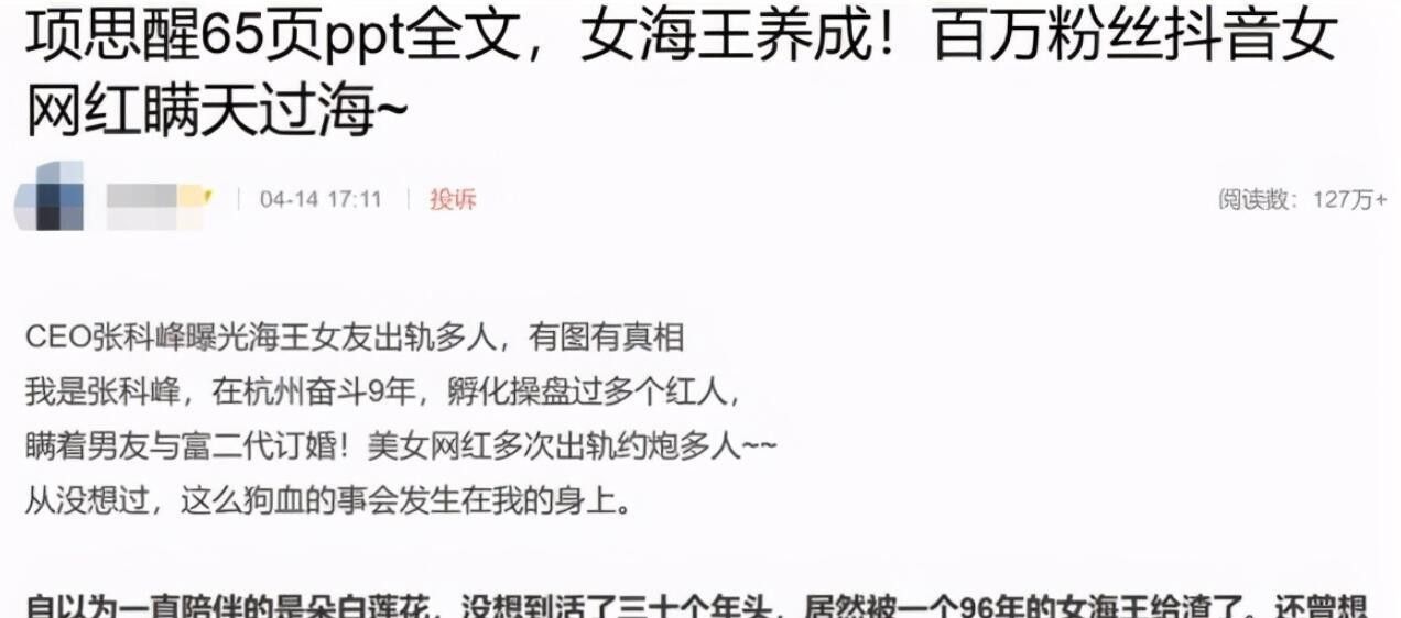 之后,他的男朋友张科峰和“海王”的事情被曝光后,张科峰的公司也陷入了困境,再加上他的几个网红都没有火起来,公司就关门大吉了。