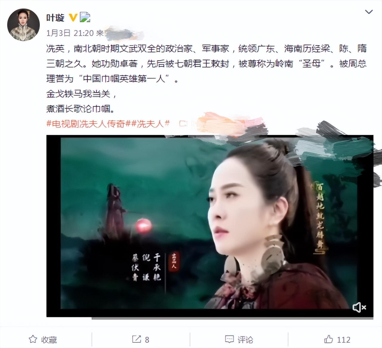昨天(1月3日)叶璇还在微博宣传自己的新剧《冼夫人传奇》,剧中的她古装扮相还是非常耐看的,希望叶璇以后能够注意下身材管理,能够呈现给观众更加完美的状态,带给大家更多精彩的作品。