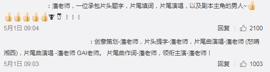 甚至,还有网友发现,潘粤明还是片尾曲的作曲、作词兼主唱。