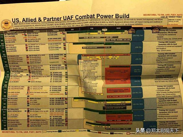 在一个名为“美国/北约特种部队在乌克兰”的部分中,文件似乎列出了在乌克兰存在的西方特种部队的数量。文件上的日期是2023年2月和3月。文件显示,特种部队可能是北约特种部队司令部协调指挥的一部分,但特种部队的组织方式的详细细节并没有指定。英国的特种部队包括SAS、特种舟艇部队、特种侦察团,以及其他几个保密军事单位,例如18(UKSF)信号团。这些部队进行秘密行动,不受议会监督。