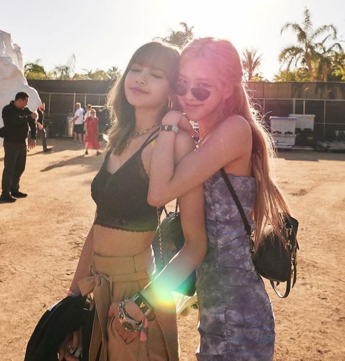 lisa rose jennie与A妹的在Coachella音乐节后台的合影,欧美女生和日韩女神同框了,看看你们都喜欢吗