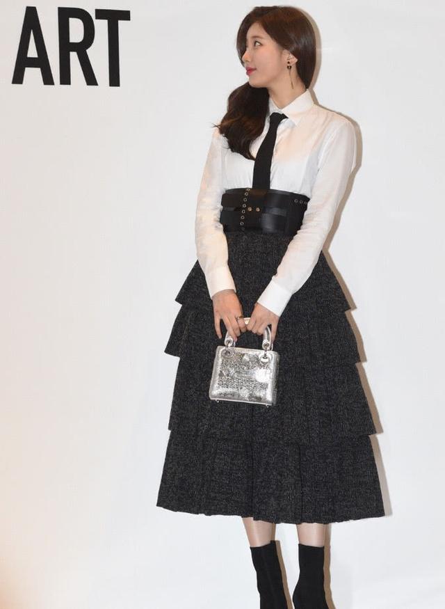 裴秀智其它的穿搭也是很时尚很显气质的,让我们来看看吧。裴秀智的这身穿搭,白色的衬衫搭配黑色的半身裙,经典的黑白配凸显了干练成熟的气质。脚踩黑色的靴子,配上精致的妆容,整体穿搭既简约又不失风范。